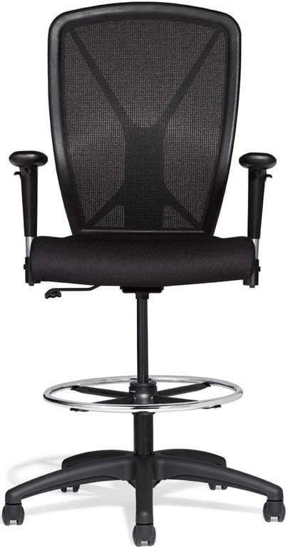 Other features on this office drafting chair include an elastomeric mesh fiber backrest that helps prevent premature stretching while distributing body pressure evenly for maximized air circulation, one-touch pneumatic seat height adjustment, chrome finish foot-rest, optional height-adjustable armrests available for a minimal charge, and a heavy-duty five-star nylon base with dual wheel carpet casters standard. This drafting chair is rated for users up to 350 lbs. Meets or exceeds ANSI/BIFMA standards.