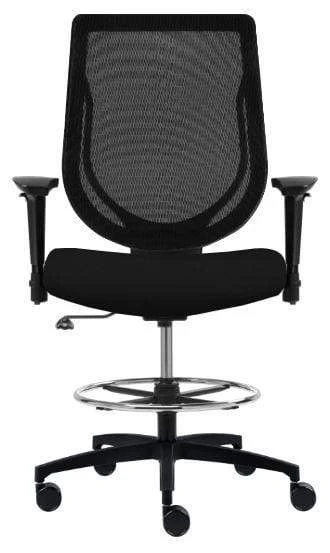 This drafting stool includes a breathable mesh backrest for maximum ventilation with an innovative back suspension, width optional height-adjustable or multifunction task arms. This chair comes standard with a molded foam seat cushion with your choice of commercial-grade upholstery.