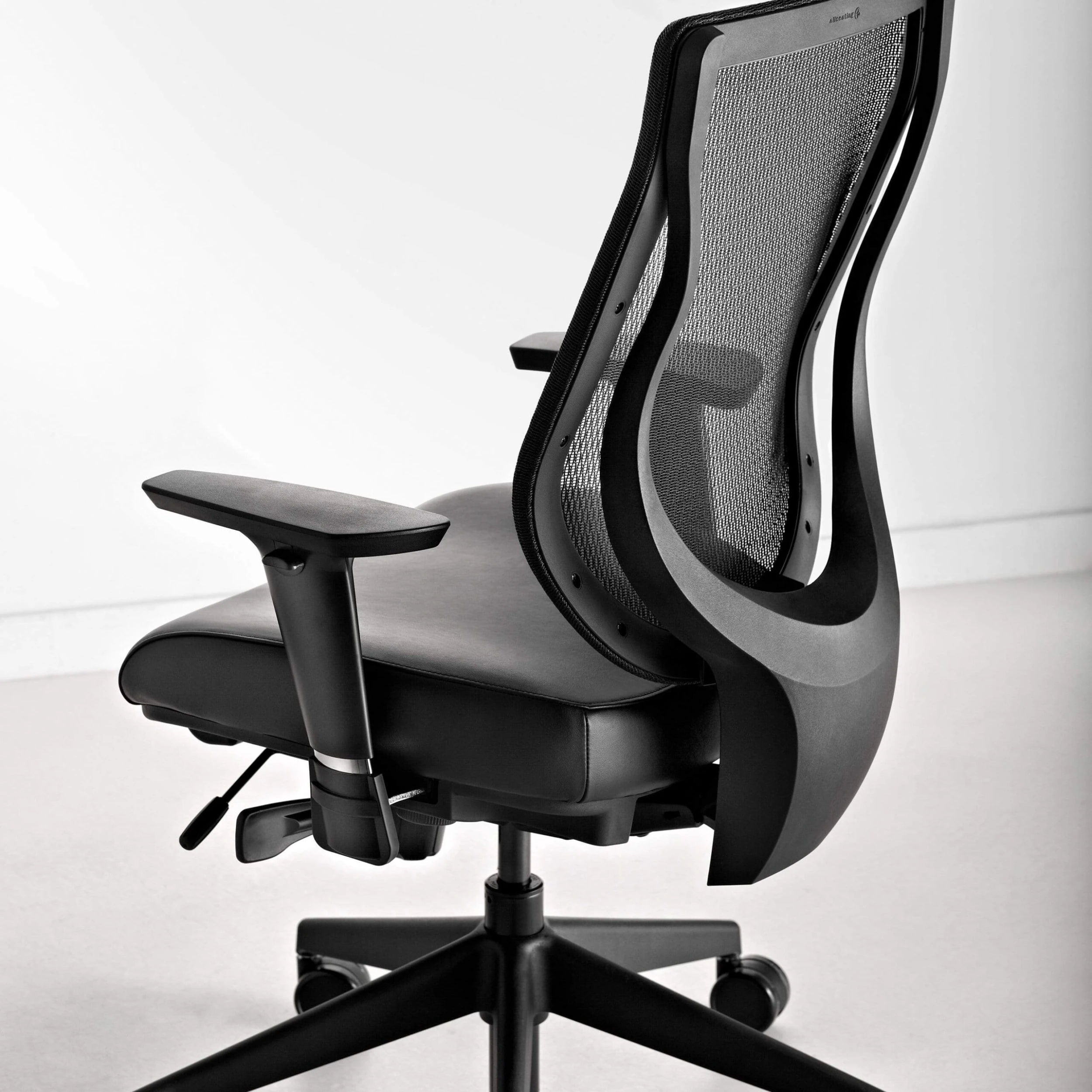 Dimensions: Seat Size: 20.25″W x 18.5″D. Back Size: 18.5″W x 22″H. Seat Height Adjustment: 15.75″ – 19.25″H. Overall: 39″ – 42.5″H x 28″W x 28″D. Weight Capacity: 350 lbs. 12 year warranty from