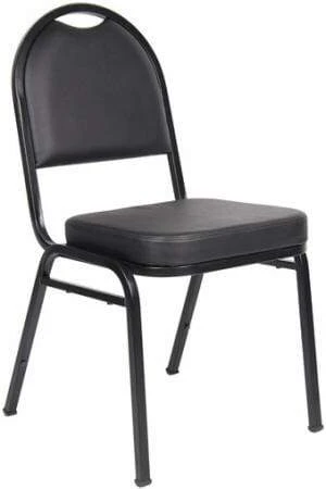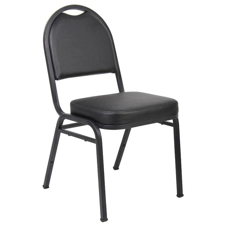 These banquet stack chairs from Boss Office Products are available in your choice of stain resistant black fabric or durable Caressoft vinyl upholstery.