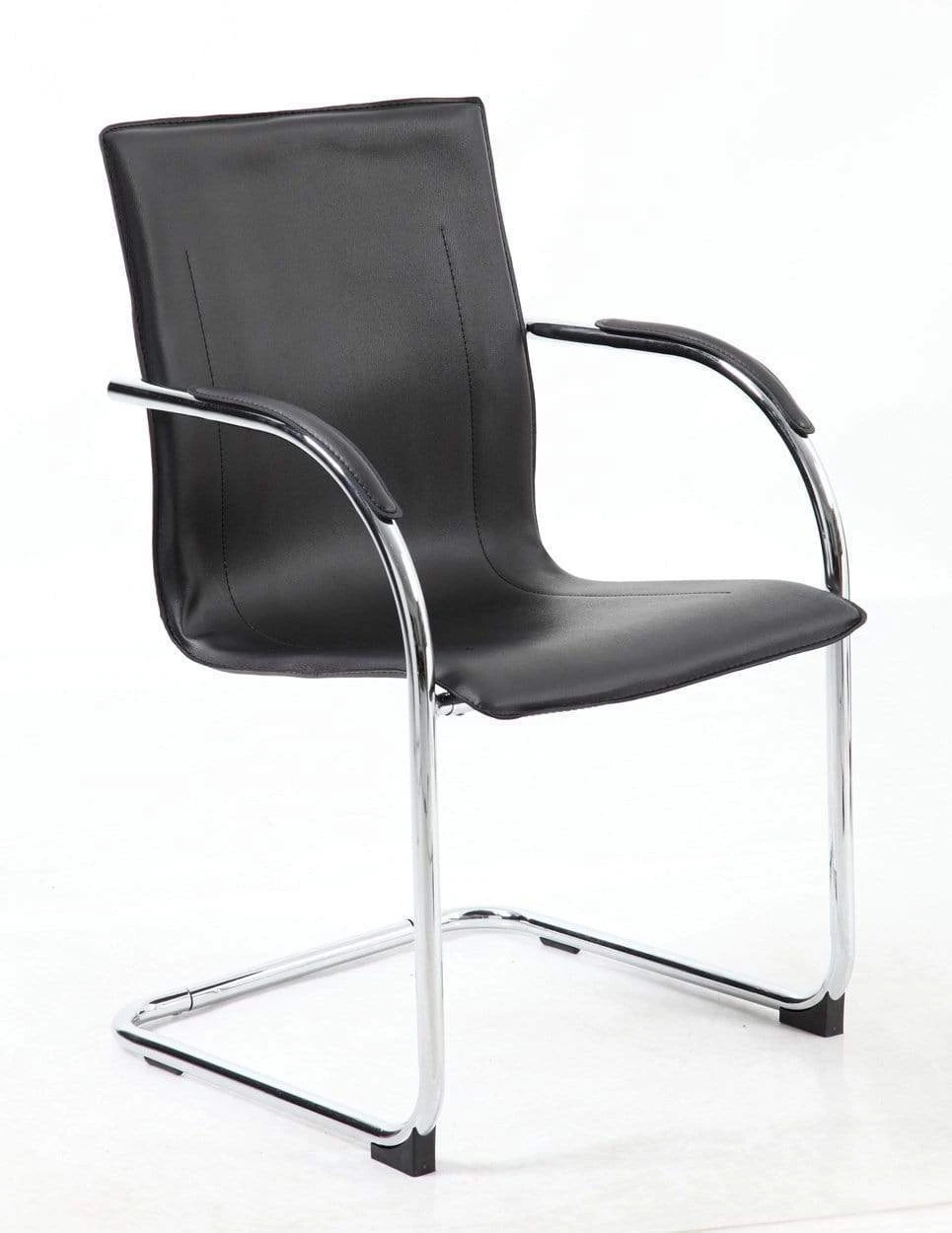 This strikingly luxurious side-chair is designed with a high-quality chrome frame that screams class and an easy to clean black vinyl seat that is beyond comfortable for any guests. The base of the chair is a chrome cantilever design and offers a weight capacity of 275 lbs. This chair itself is the perfect blend of class and professionalism, without sacrificing comfort or quality. The chair is sold 2 pieces per pack and would make a great accompaniment to most any office.
