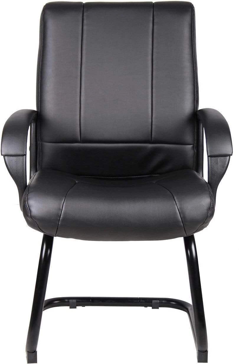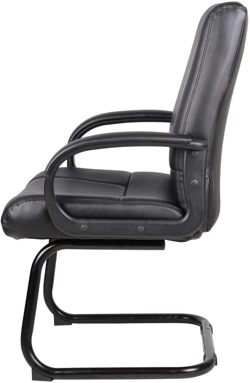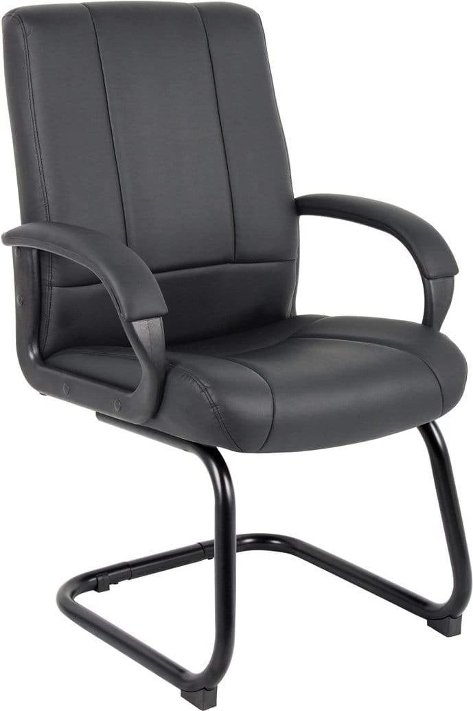 This guest chair is the perfect companion piece to our B7901 and B7906 executive chairs. Like its snazzy mid and high back counterparts, it provides a professional, muted look with its soft and durable Caressoft leather upholstery. In addition to integrated lumbar support, it features a sturdy cantilever base for optimal stability. Its total arm height is 27”, its seat height is 19”, and its overall size is 27” W x 27” D x 40” H.
