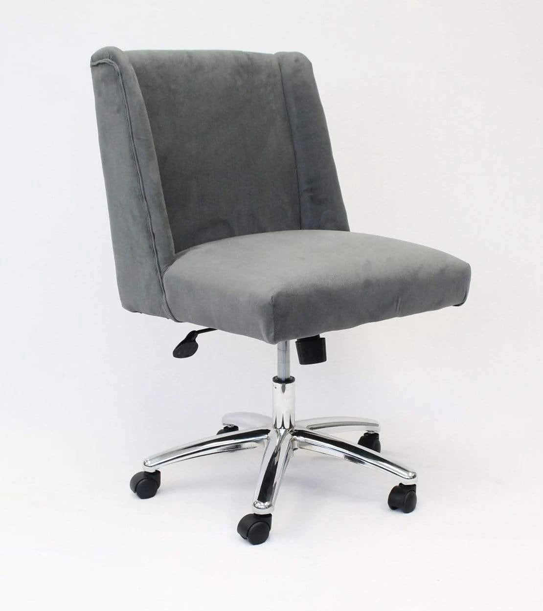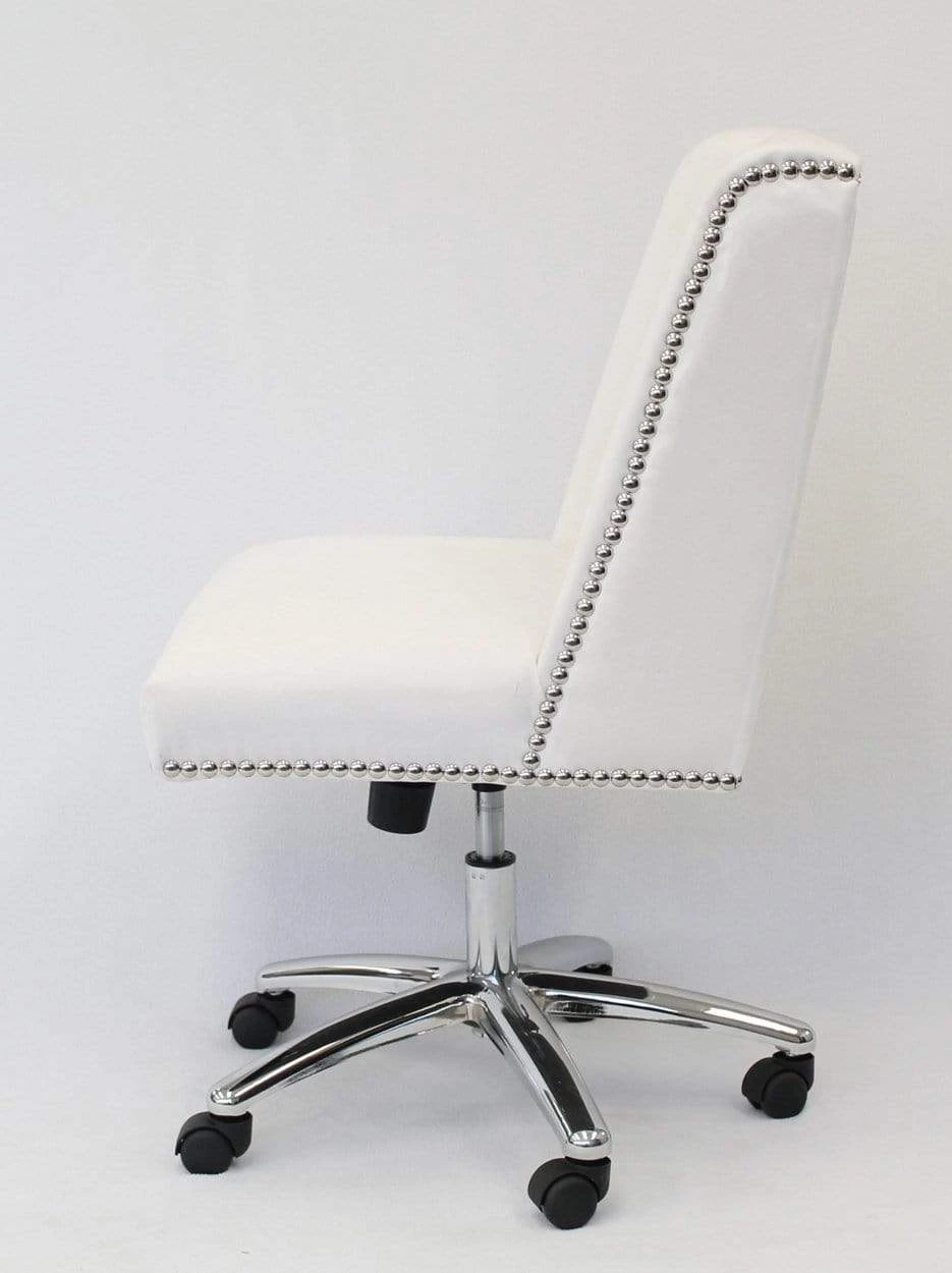 The decorative task chair in white velvet is functional and just as the name implies: decorative! The chair is made from a gorgeous velvet material and features a 25 inch chrome base with 2 inch nylon dual wheel casters for a smooth roll. The chair also has a pneumatic gas lift that allows for easy adjustable height, as well offering top of the line features such as a spring tilt, tilt tension and an upright lock.