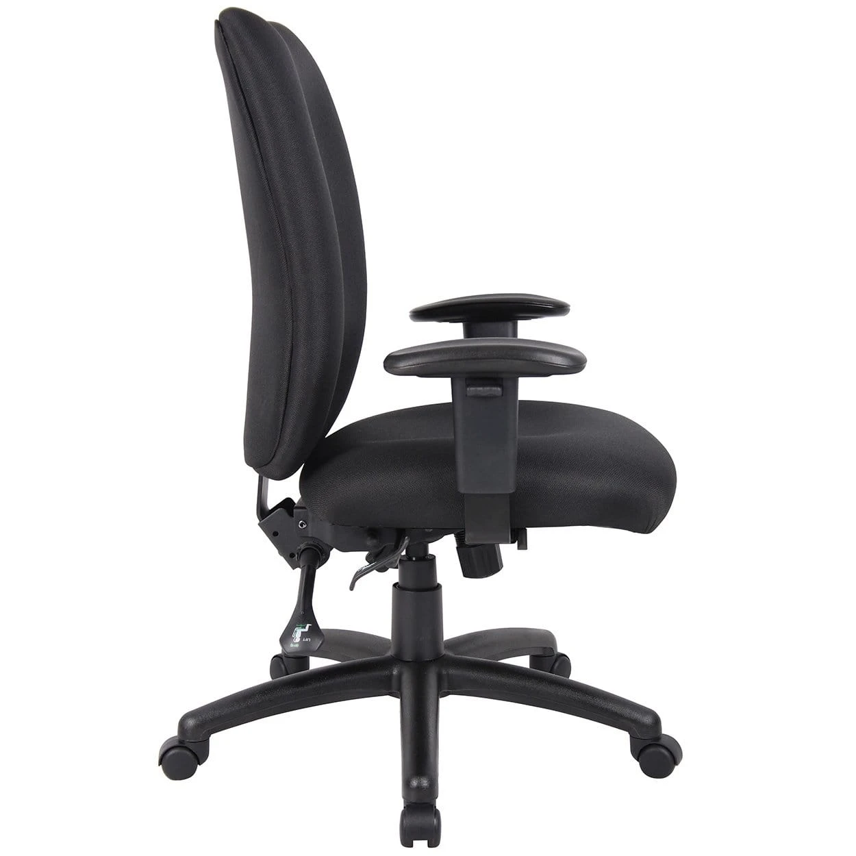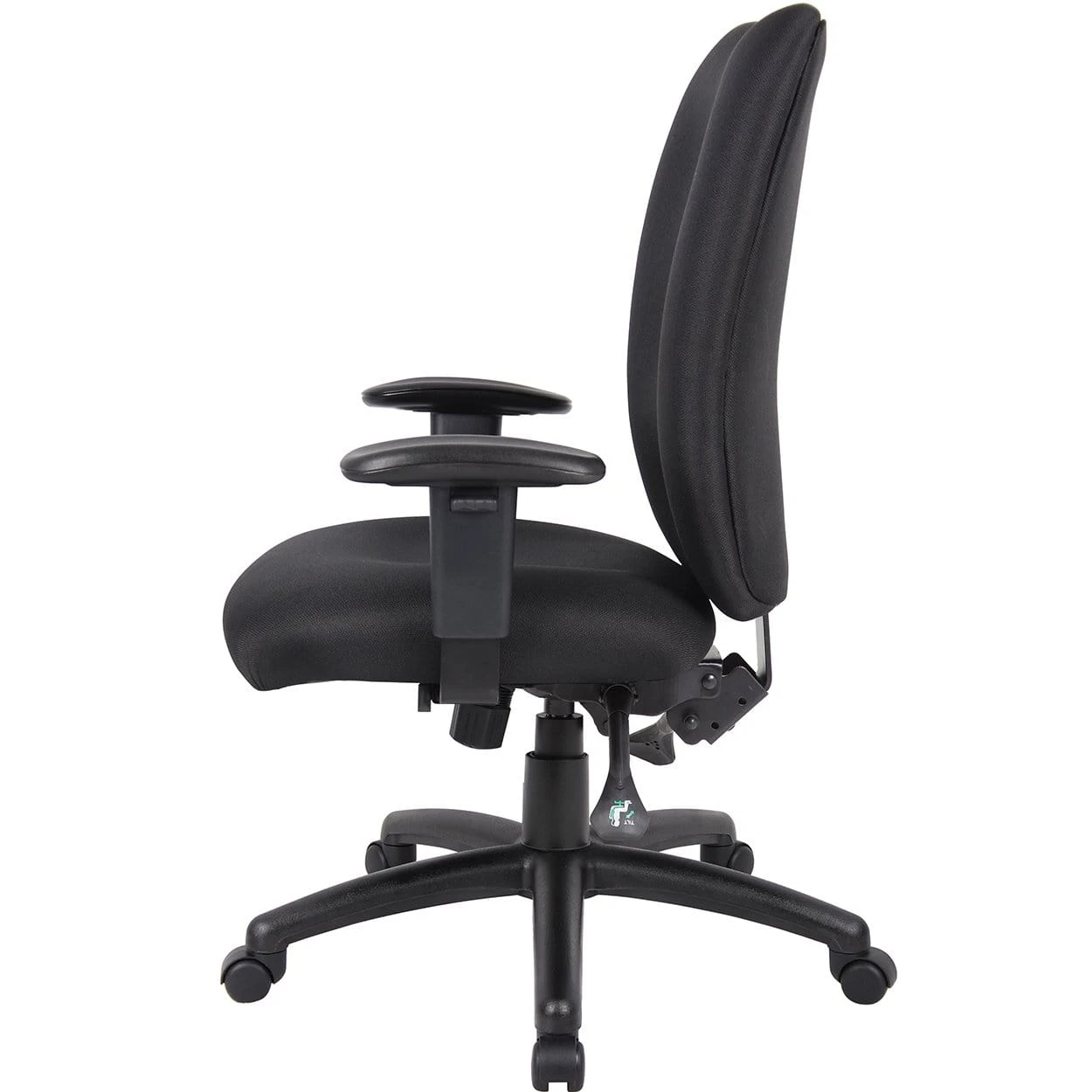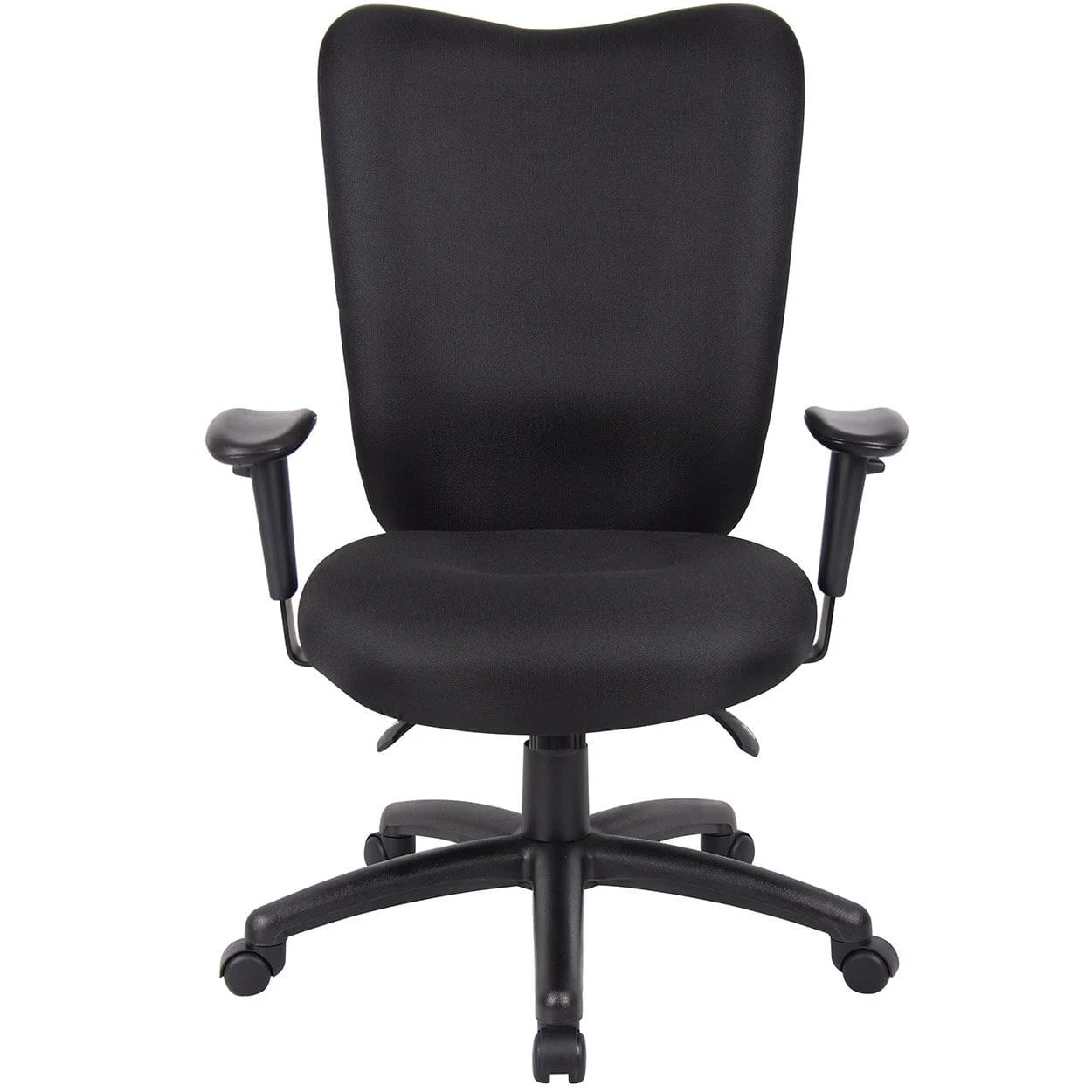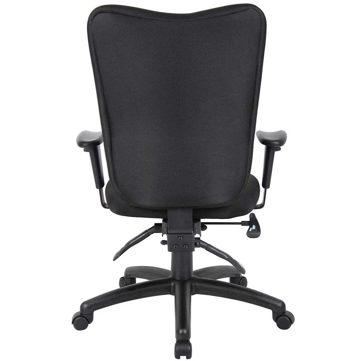This high back ergonomic office chair from Boss Office Products features thickly padded seat and back cushions with an adjustable height backrest and back angle lock for perfect positioning of the built in lumbar support