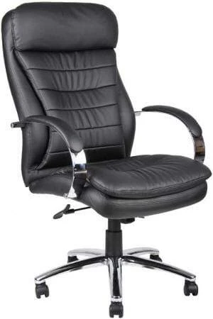 This high back executive office chair from Boss Office Products features thickly padded and properly contoured cushions with an added, extra layer of foam for incredible comfort. Other features include pneumatic seat height adjustment, 2-paddle spring tilt mechanism, which can be locked in any position throughout the tilt range, 360-degree swivel, beautifully upholstered in Caressoft Plus™ upholstery, padded loop arms with chrome finish, and a heavy duty five star metal base with chrome finish and dual wheel hooded casters. This high back contemporary office chair meets or exceeds ANSI/BIFMA standards. Caressoft Plus™ is a breathable and extremely durable synthetic material that mimics the look and feel of high end, top grain leather.