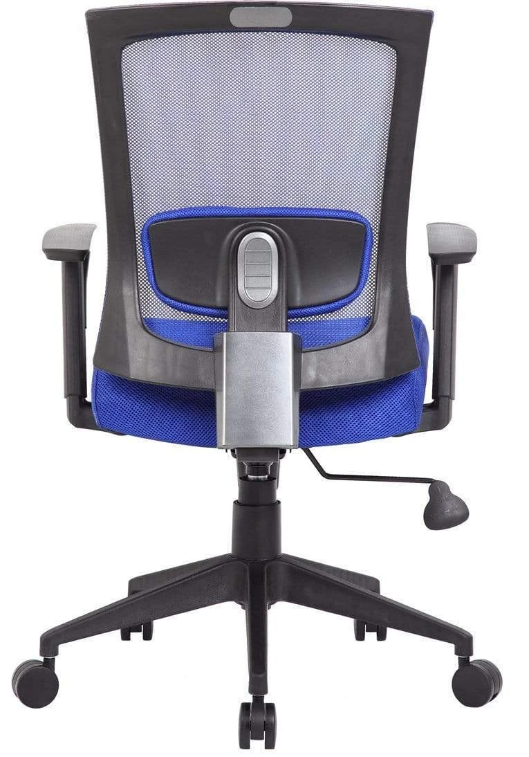 - Contemporary chair upholstered in Blue mesh material, which allows air to pass through, adding to long term comfort by preventing body heat and moisture build-up