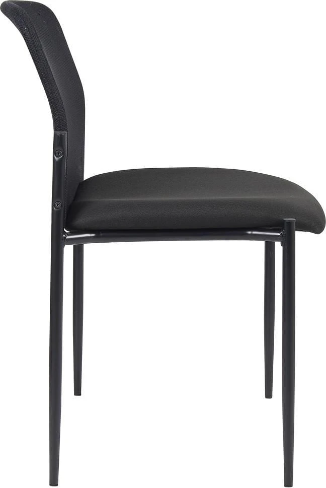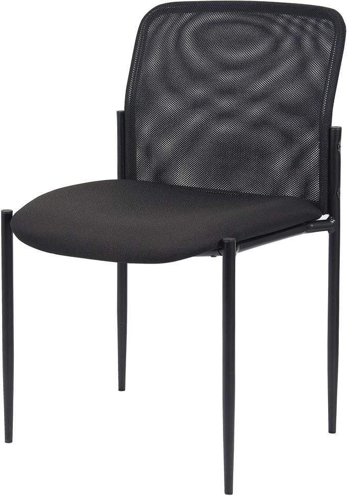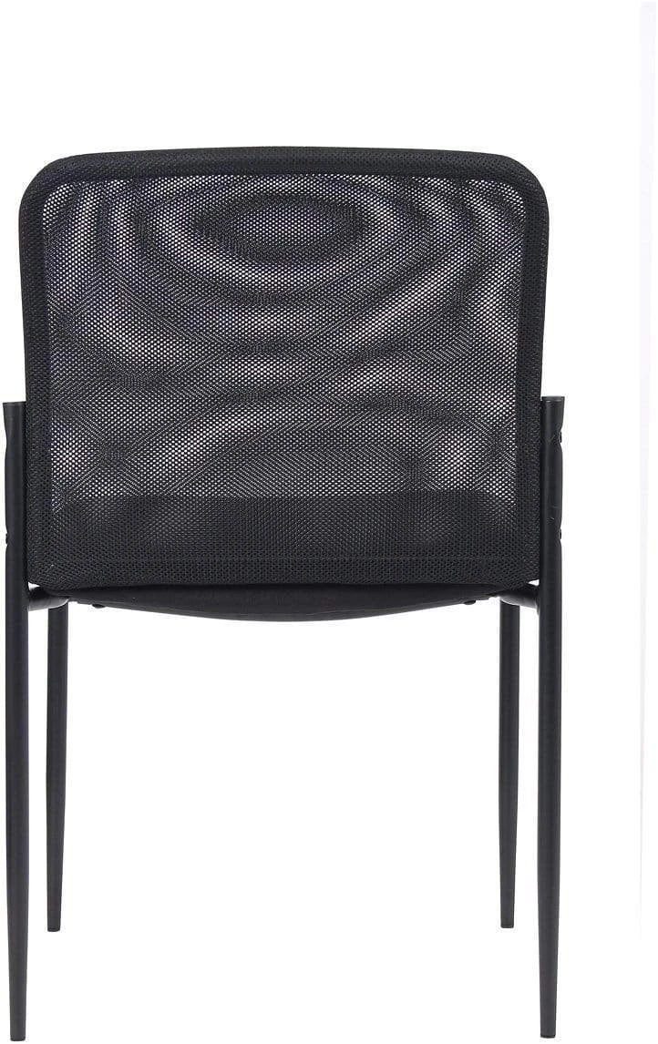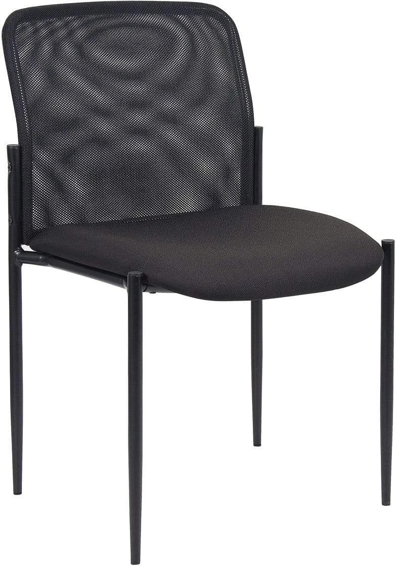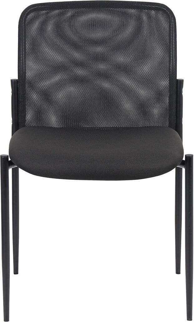 The mesh guest chair in black is the perfect addition to any room or office. For smaller spaces, the chair can be stacked 4 high and stored away when not in use. The chair is at a fixed height with fixed arms and is designed with a mesh seat as well as a breathable, airy mesh back. The black chair adds a modern, professional appearance to any space and has a weight limit of 275 lbs.