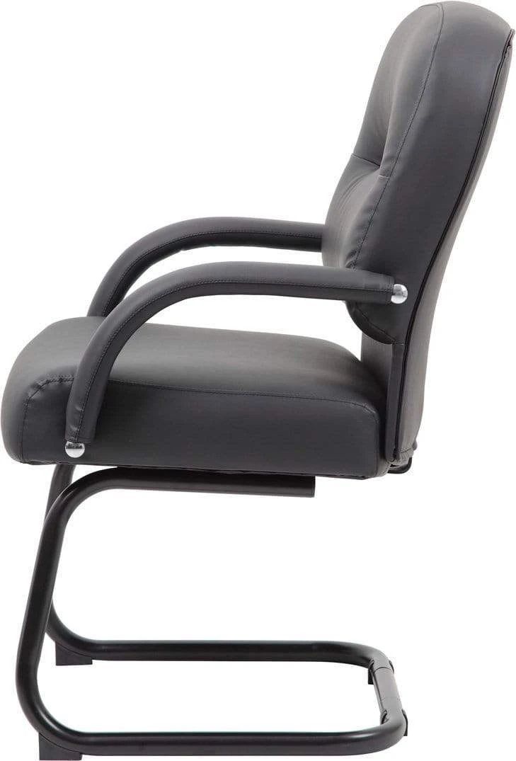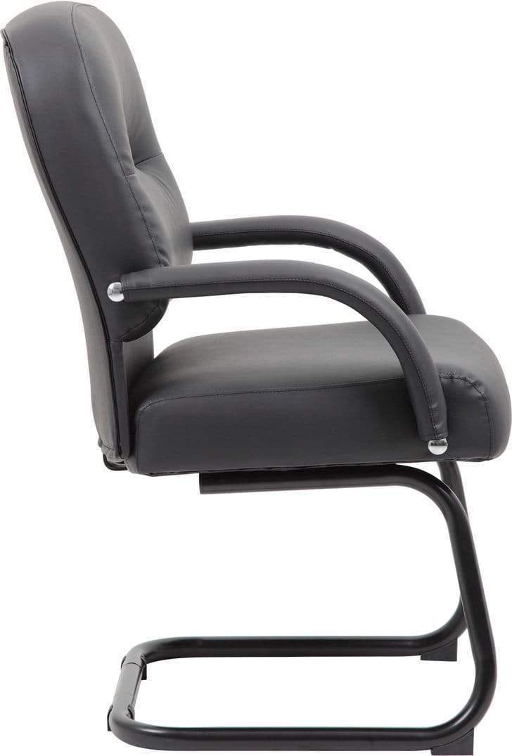 This beautiful guest chair is elegantly upholstered with soft, durable, and breathable Caressoft upholstery. Ensure that your guests are always sitting in style with this perfect companion to our high back (B7401) or mid back (B7406) chairs. It features a sturdy cantilever base, executive mid-back styling with optimized lumbar support, comfortable padded armrests with matching upholstery, an arm height of 27.5”, a seat size of 22” W x 22” D, and a seat height of 20.5”.
