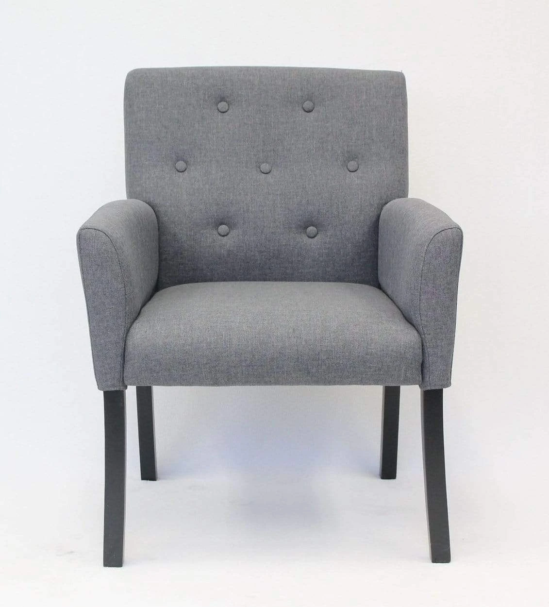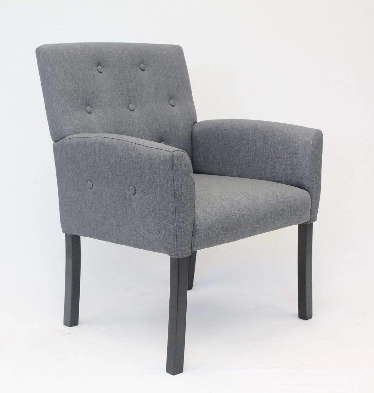 This executive box arm chair is proof that, when it comes to task seating, aesthetic and ergonomics often go hand-in-hand. It features button tufted commercial grade linen, four black legs, and comfortable fixed box arm styling. Its slate grey linen and black leg combo imparts a subtle, naturalistic look that is suitable for a variety of environments and color schemes. After a relatively straightforward assembly the accent chair is capable of supporting up to 275 lbs.