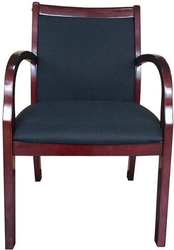 Our sturdy wood side guest chair makes the perfect addition to any waiting room, conference room, home, or office setting. It is elegantly upholstered with beautiful, durable black crepe fabric and features rich mahogany finish alongside a sturdy hardwood frame and thick seat cushion for hours of comfortable sitting. What better way to provide a positive experience for guests and visitors than providing comfortable and stylish seating options? That was a trick question, there isn’t one.