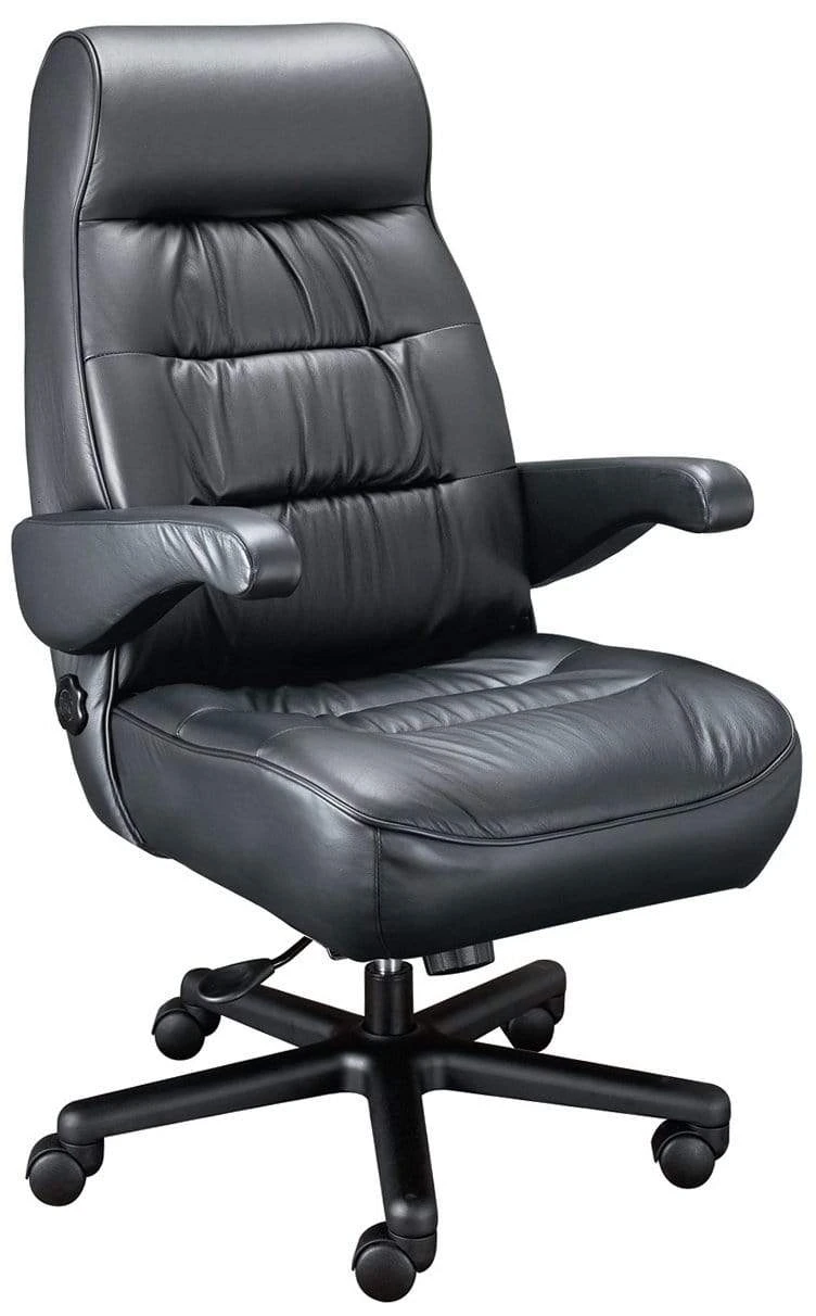 We’re not sure what you’re supposed to be exploring in this “big and tall” Explorer executive chair, but whatever it is, you’ll do it in complete comfort. The seat features floating spring suspension and thick cushioning, and the depth is adjustable. There’s also a rocker reclining seat back with four-way lumbar support. Add to that all the features you’d expect, like pneumatic seat height adjustment, tilt tension adjustment, and 360-degree swivel, and you’ve got a chair you can sit in practically forever. And when you’re ready to get up, the arms flip for easy exit. Big and tall people up to 500 pounds will love this chair and love the lifetime warranty! It’s available in stain-resistant fabric, easy-to-clean commercial vinyl, leather seating surfaces with vinyl trim (/LM), and even a full-leather option.