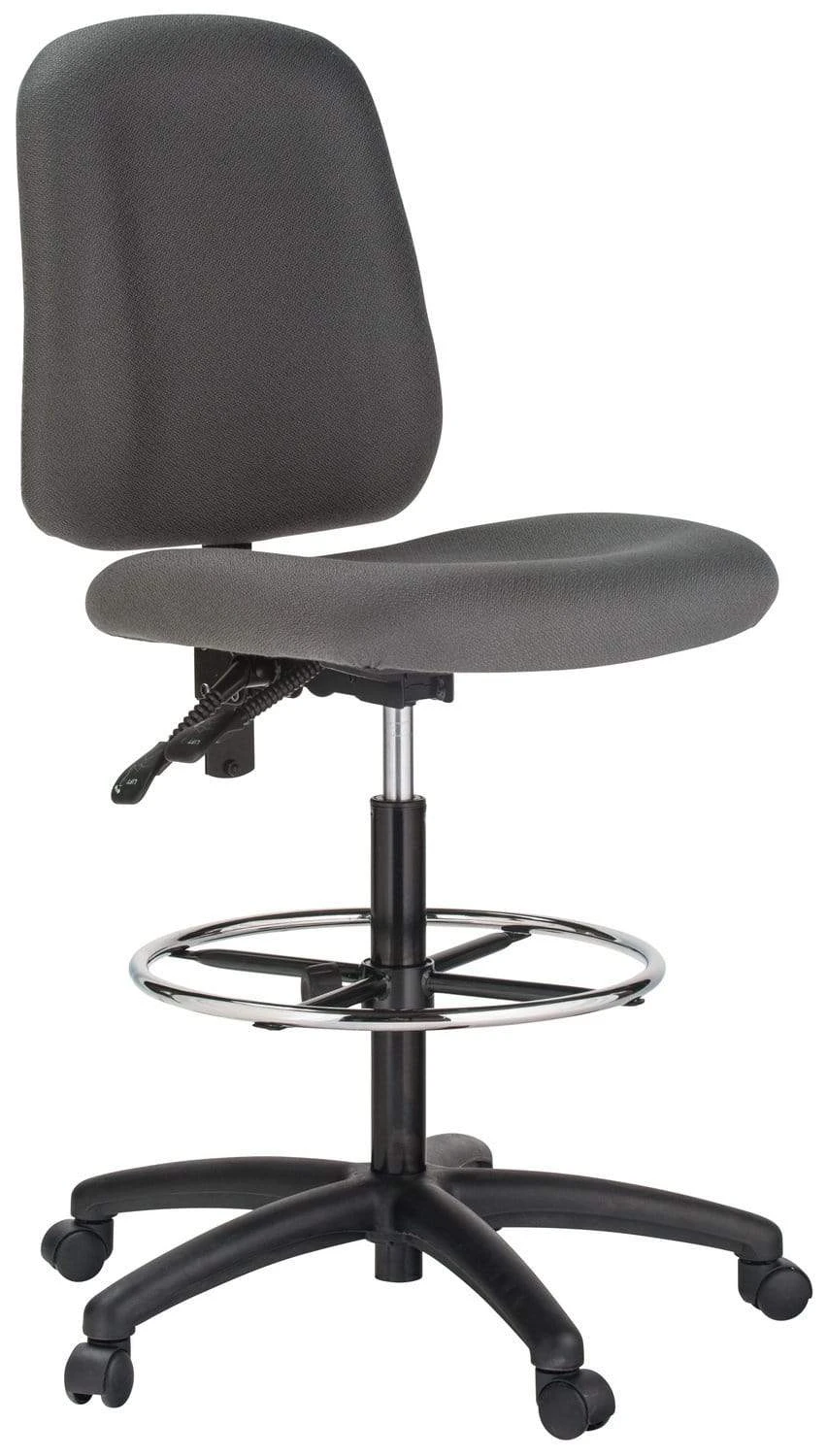 This Harwick fabric upholstered bank teller chair features thickly padded, 3″ thick foam-filled cushions with an ergonomic contour in both the seat and backrest for comfort that lasts the entire day. Choose from commercial grade grey or black fabric.