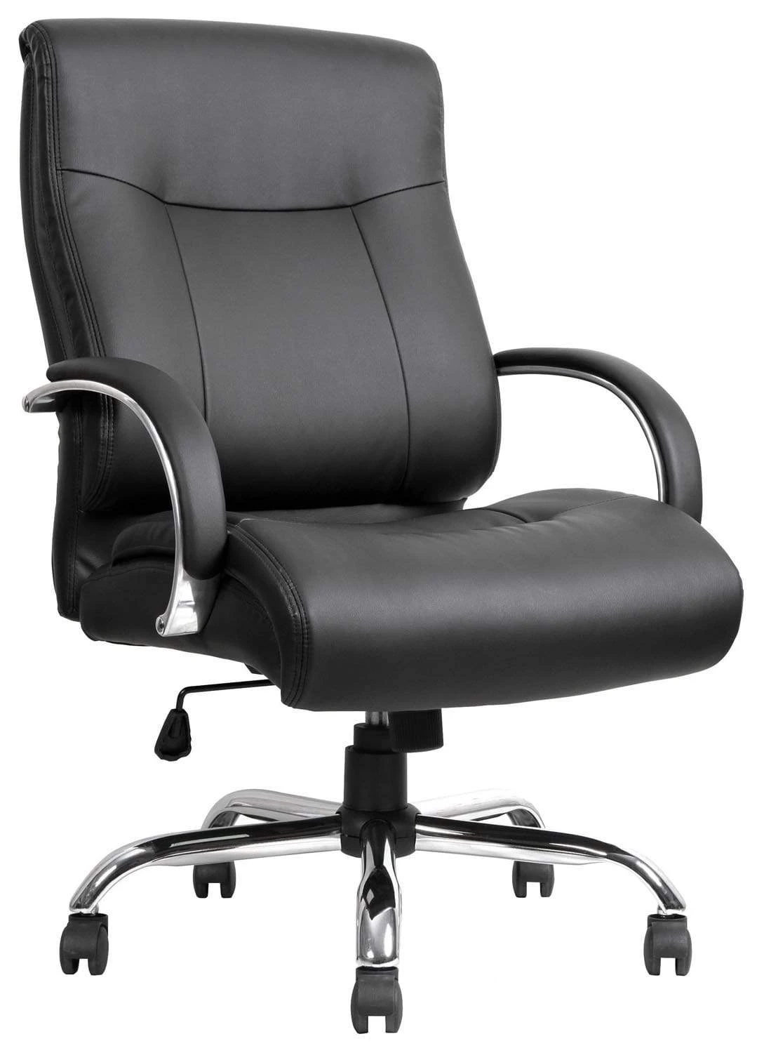 This big and tall leather office chair, from Lorell, holds up to 450 lbs! It features a soft yet durable bonded leather upholstery over a thickly cushioned seat, back, and armrests.