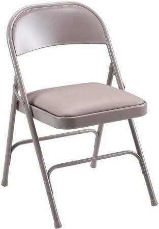 These metal folding chairs from Lorell feature matching beige vinyl upholstered padded seat for added comfort.