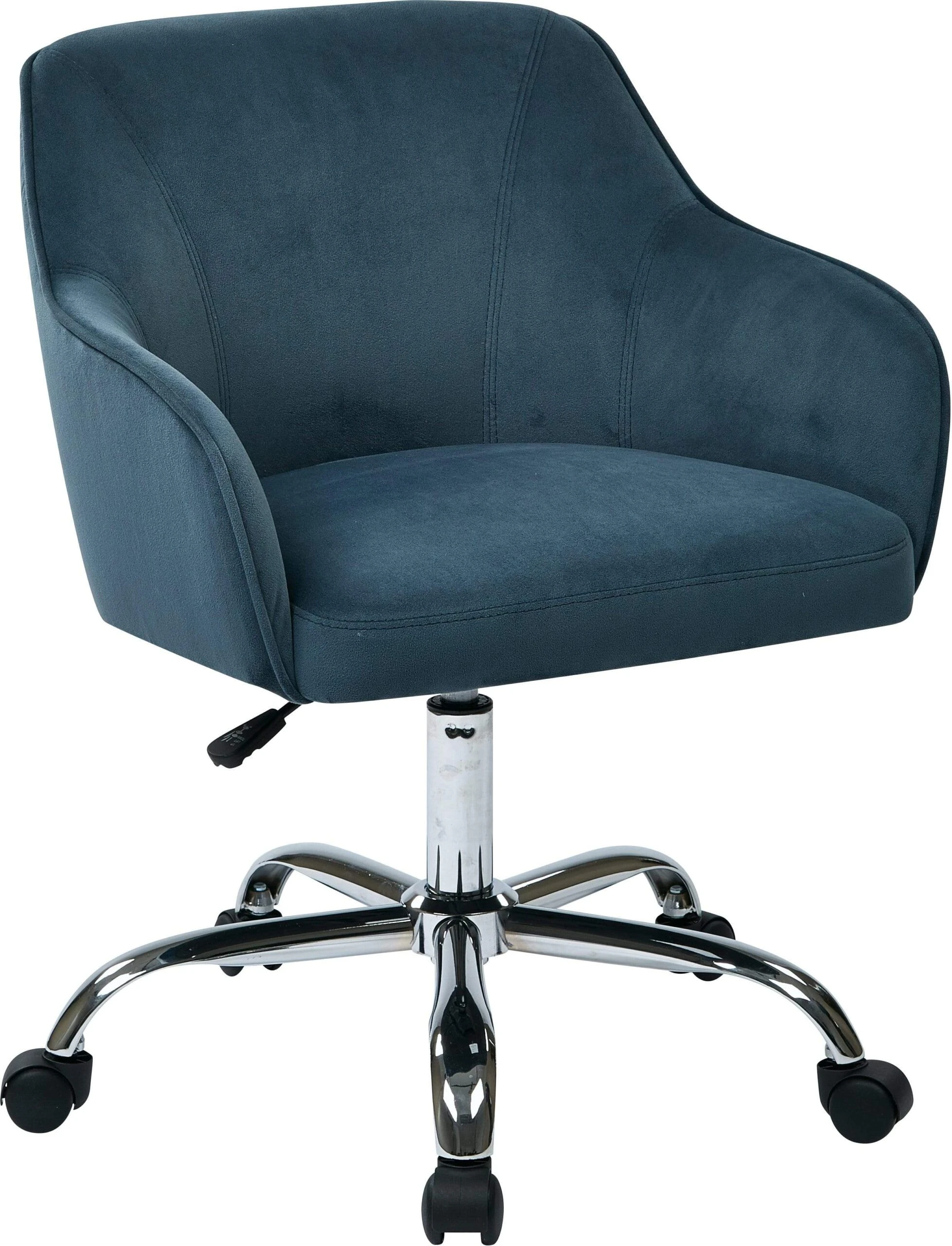 This sumptuous velvet Bristol Task Chair allows you to roll through any undertaking effortlessly. Durable polished chrome base and high performance all directional wheels allow smooth movement across carpeting.