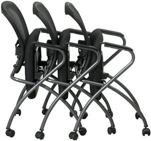 Hot Item! – Our Top Pick for Nesting Chairs with Arms!This mesh folding chair from Office Star features a “Pro-Grid” screen mesh backrest for maximum support and ventilation. We recommend this model as a low-cost alternative to the Mayline TSH1 chair.