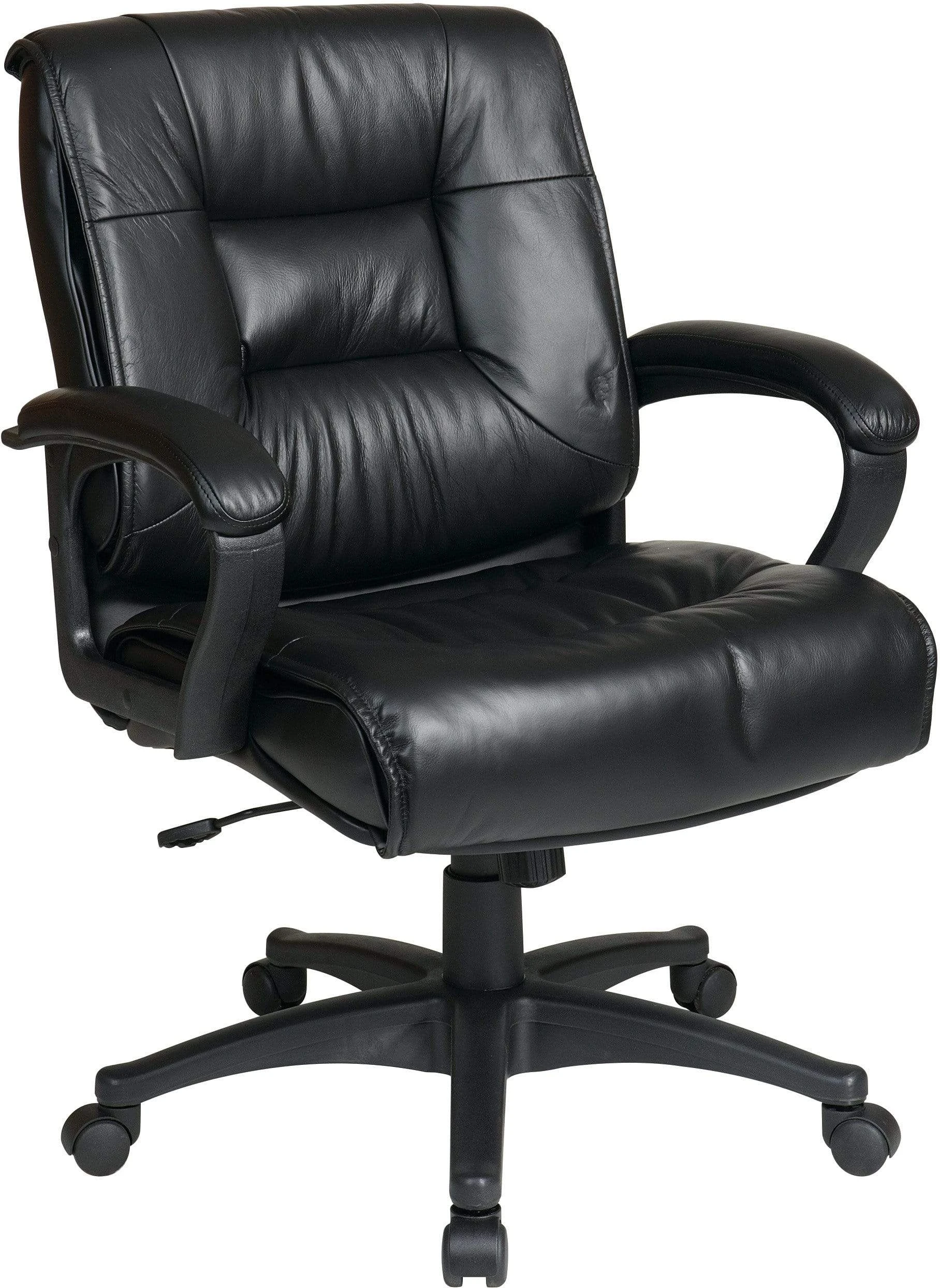 This leather office chair from Office Star features your choice of black glove soft leather or top grain burgundy leather.