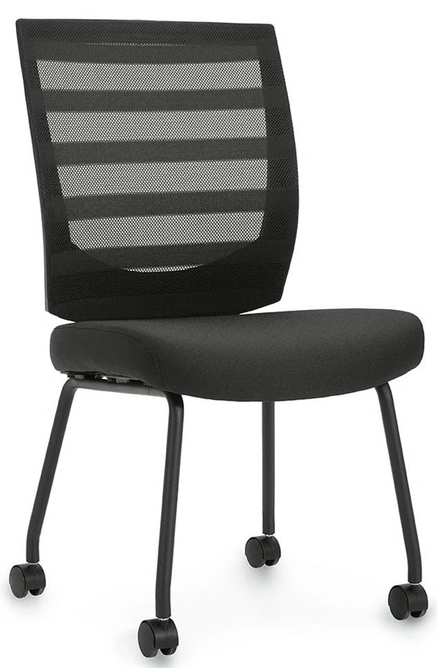 Welcome guests in style with the Offices To Go Armless Mesh Back Visitors Chair. With its contemporary design and sturdy steel frame, this chair provides comfort and support for guests up to 250 lbs., while its modern black mesh back and black woven fabric seat compliment any office décor.