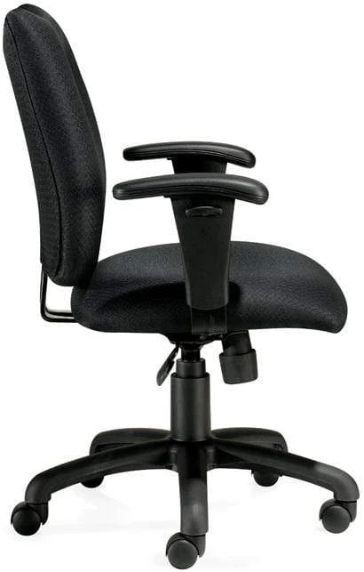 This office task chair from Offices To Go™ features durable, stain resistant fabric upholstery over thickly padded seat and backrest cushions for all-day comfort. Other features of this task chair include tilt with tilt lock and tilt tension adjustment, pneumatic seat height adjustment, fixed back angle, height adjustable armrests and a durable molded five star angled base with twin wheel carpet casters. This office task chair meets or exceeds ANSI/BIFMA standards.