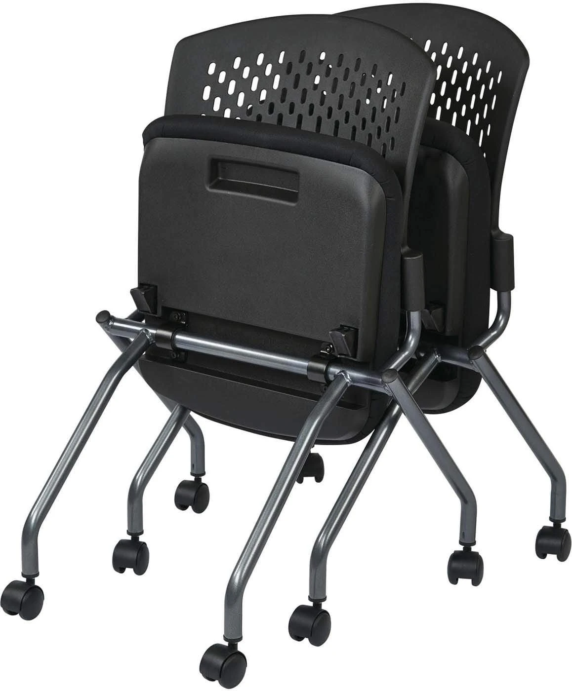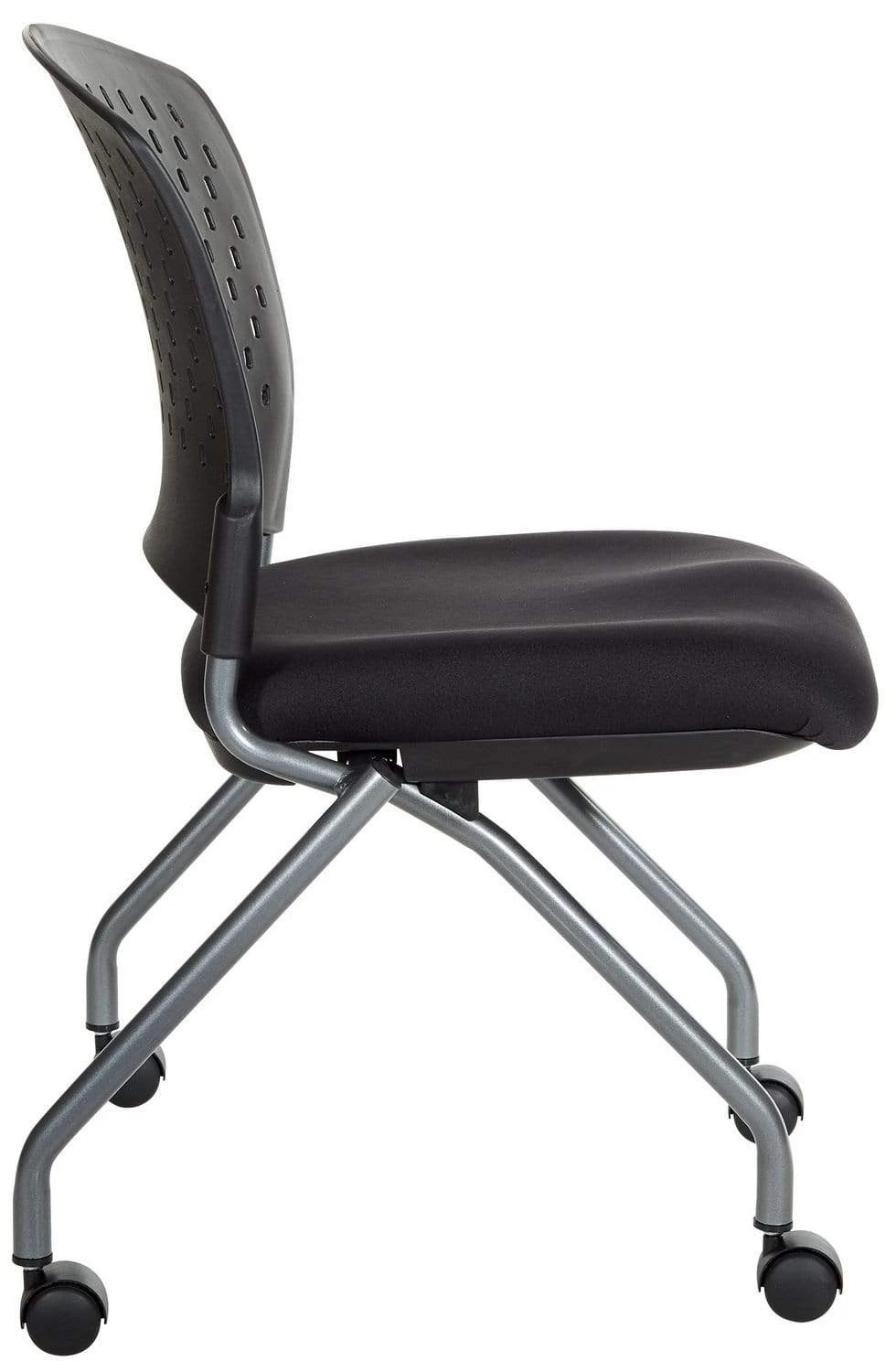 Offer your guests a seat on the comfortable Pro-Line II™ deluxe armless folding chair made with a sturdy titanium frame. These chairs come complete with dual-wheel carpet casters for easy mobility. These chairs are designed to fold up horizontally to allow them to be nested so you can free up space in your office when not in use. These chairs are sold in sets of 2 and are backed by a limited lifetime warranty.