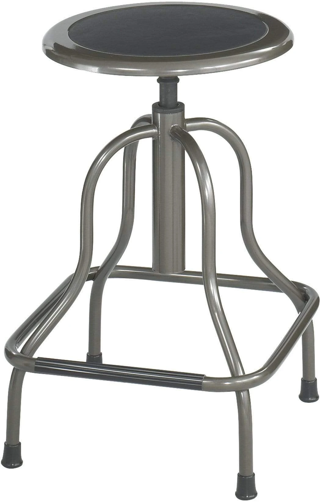 Safco’s Diesel High Base is a steel stool ideally suited for workbench and work table use in the industrial, institutional and educational industries. The office stool features a padded steel back, steel frame and pewter finish. A steel screw lift manually adjusts the padded seat. The stool’s durable rubber feet protect floors.