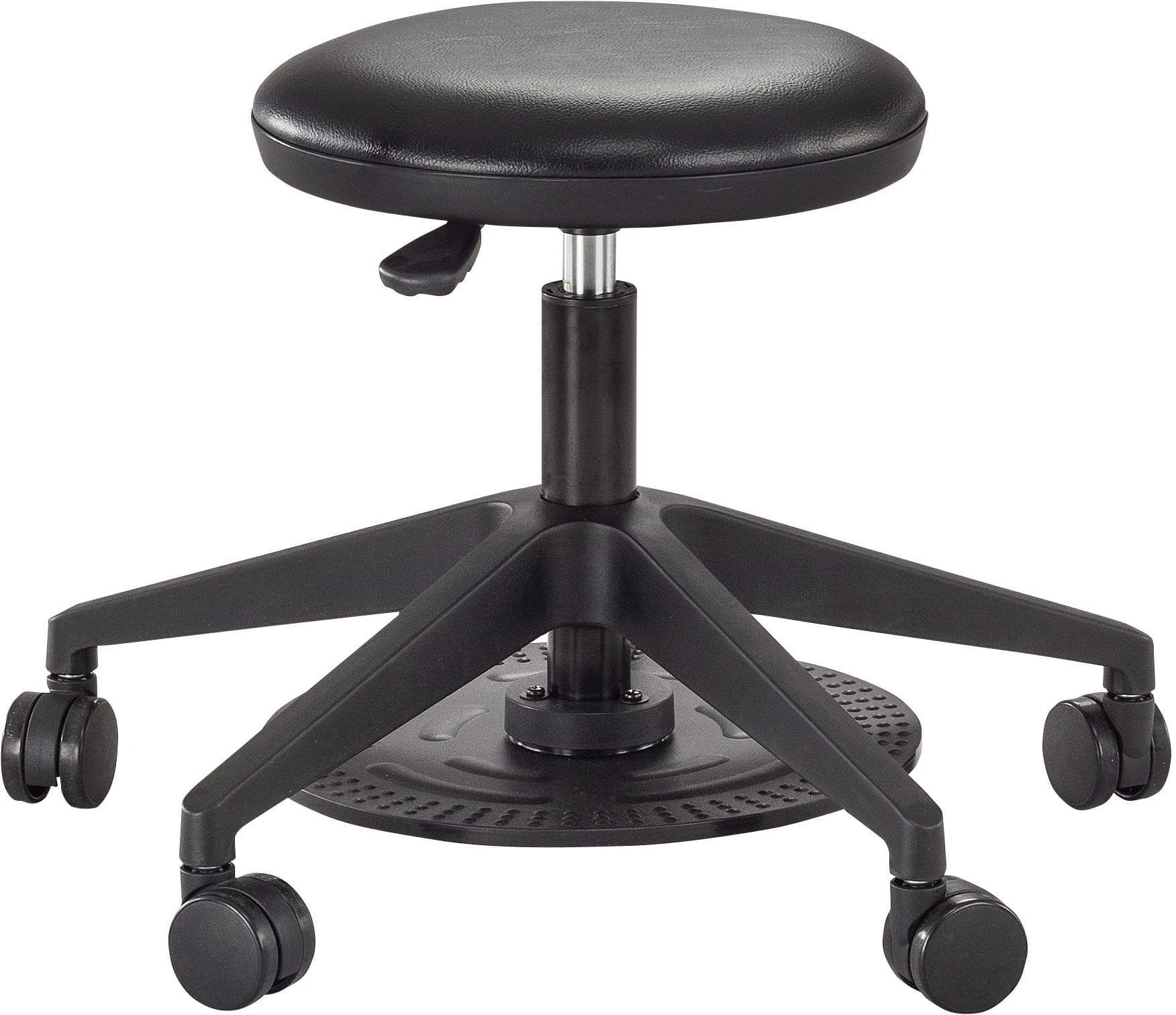Foot Pedal Lab Stool provides a comfortable seating experience in a variety workspace settings. The lab stool features two ways to adjust its height. Simply use your heel to push down on the foot pedal plate for a hands-free adjustment to keep you focused on your work, or use the pneumatic height-adjustment lever under the seat. Both adjustments have a range of 17-22” to fit a variety of user heights. Stool is mobile on five casters for easy mobility and is stable on a five-star, nylon base. Seat is made from easy-to-clean vinyl and lab stool meets ANSI/BIFMA testing for user safety. Perfect for use in labs, hospitals, design studios and personal workspaces. Also works great alongside TechWorks® Workstation, work benches or adjustable-height desks. Available to ship within 48 hours.