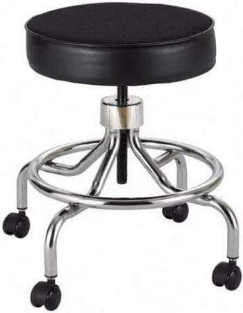 This lab stool from Safco features a manual lift height adjustment and low base with built in footrest. Safco low base lab stool offers a thick cushion that allows for enduring comfort. Swivel casters provide effortless movement throughout the work quarters. Safco’s chrome base provides strength to handle the fast paced environment of a lab. Circular swivel motion serves to limit back strain.