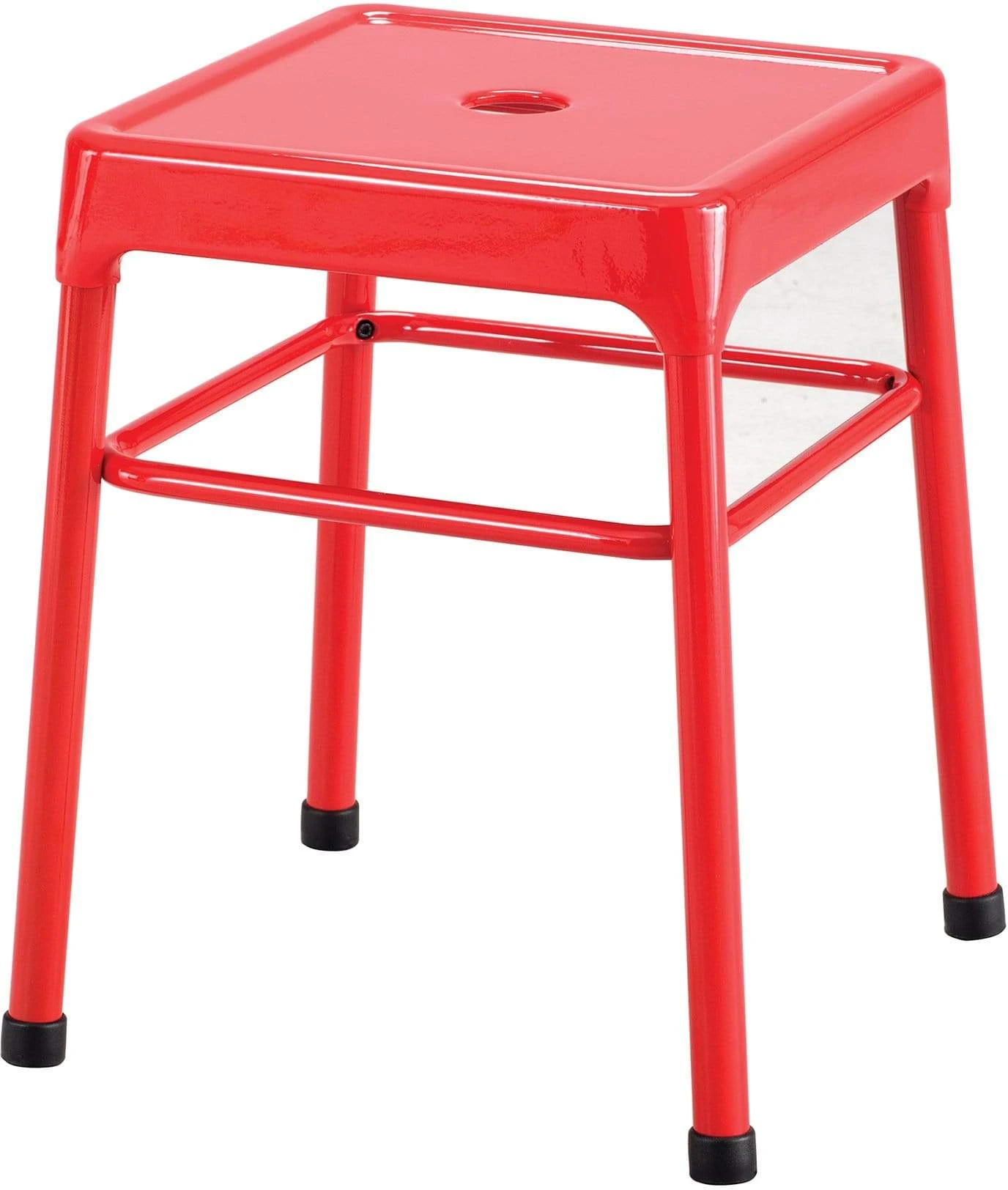 The Safco® Steel Guest Stool is a sturdy, all steel stool that is great for use in a variety of spaces. The new guest-height stool is perfectly suited for use in breakrooms, open floor plans, personal workspaces, lobbies and more. The easy-to-clean powder coat finish is durable and chip-resistant for a long-lasting seating option. These stools include choice of nylon leg caps or leveling glides to protect floors from scratches or scuffs. The hole in the top of the seat allows the chair to be easily grabbed and carried to allow for portability between spaces. Available in Black, Silver, Red or White color options to suit personal preference or decor. Available to ship within 48 hours for convenient and fast delivery.