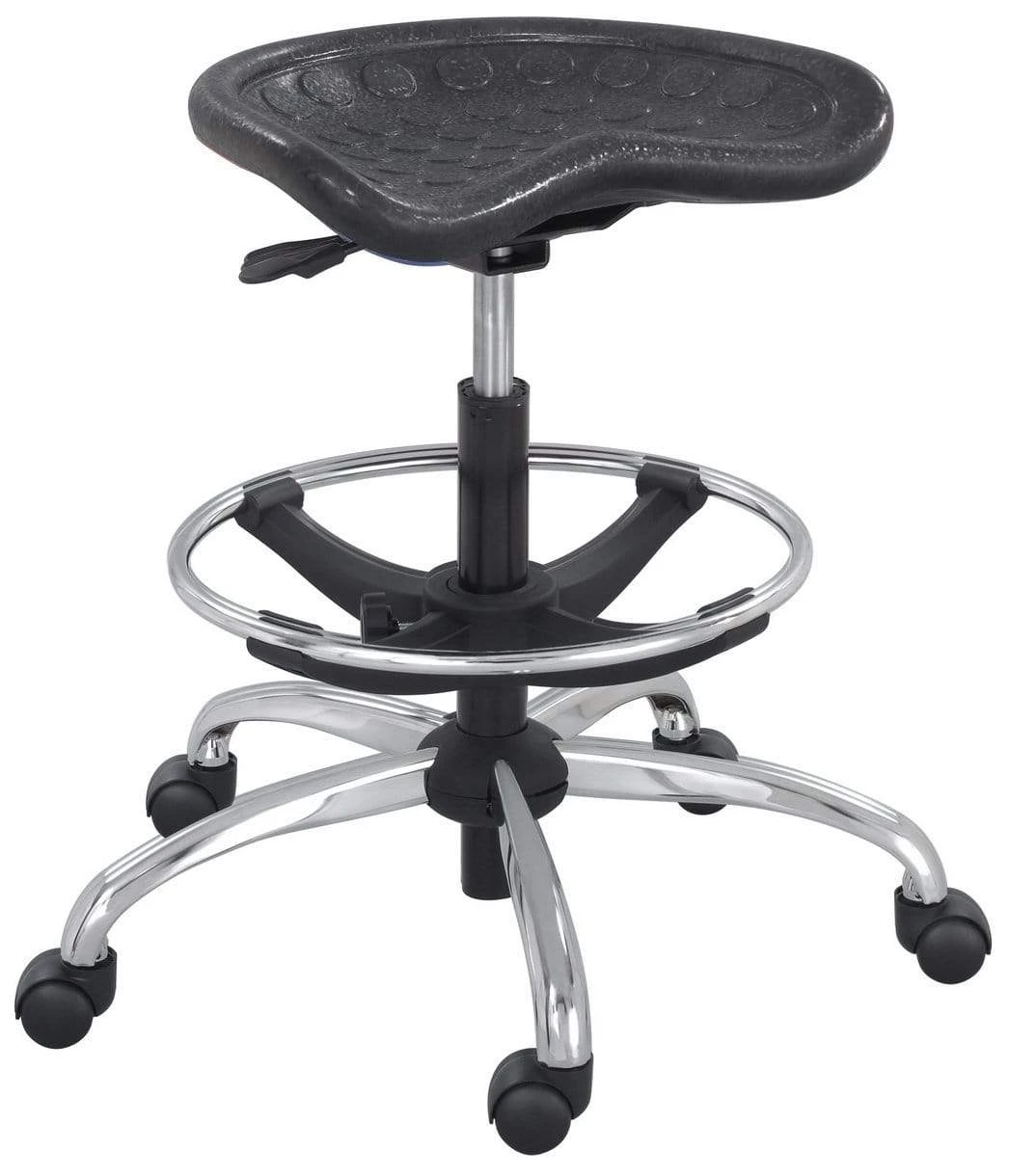 This SitStar series tractor seat stool from Safco features an oversized tractor-shaped seat in black. The seat is PVC-coated and gel molded onto a metal frame for lasting durability and comfort.