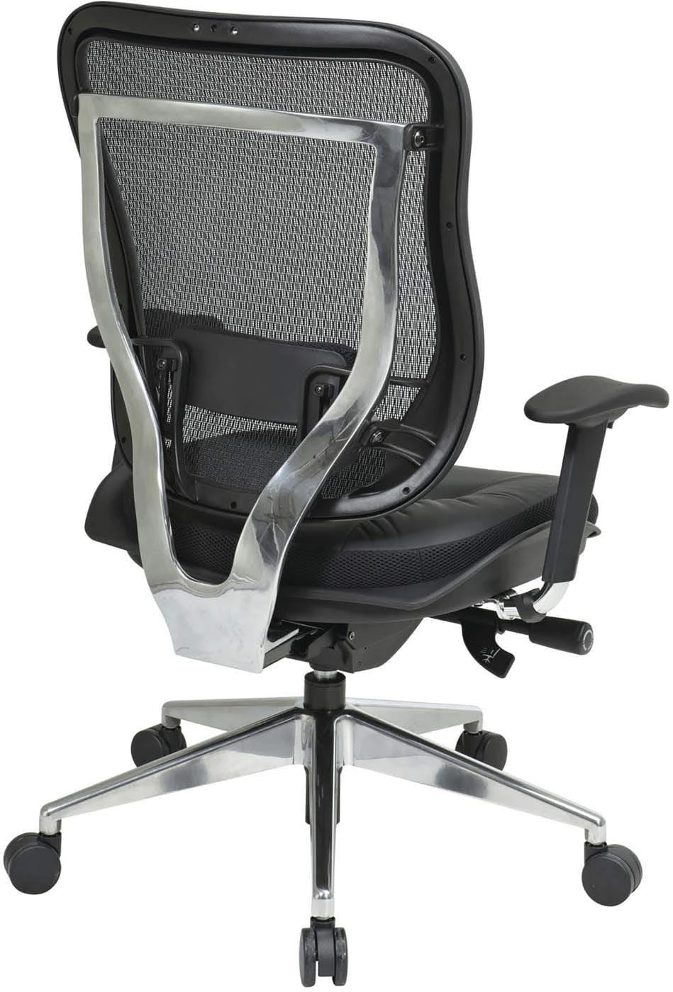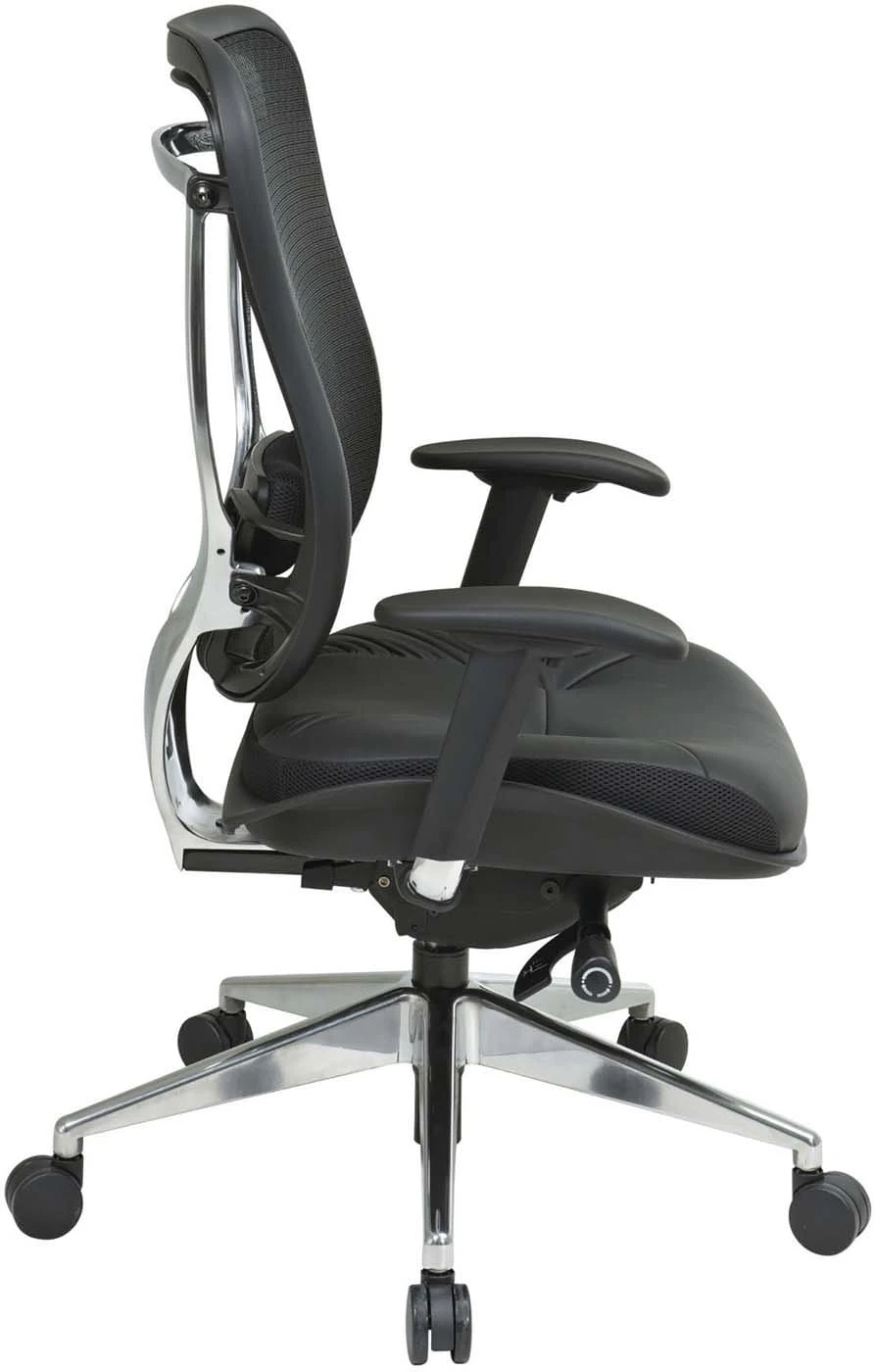 Fabric: Black Breathable Mesh Back and Black Top Leather Seat