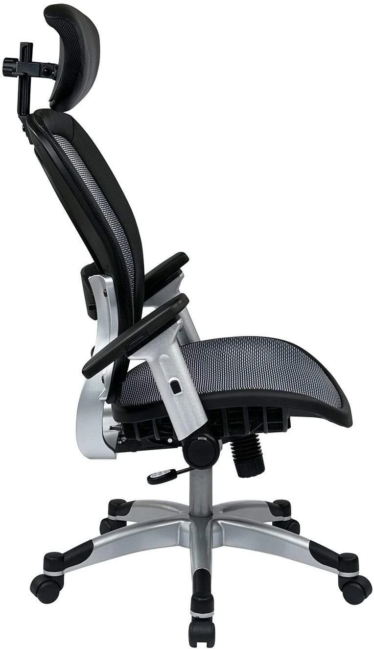 This full mesh office chair from Office Star features breathable air grid screen mesh upholstery on both the backrest and the foam padded seat. Optional leather padded, adjustable headrest also available for a minimal charge