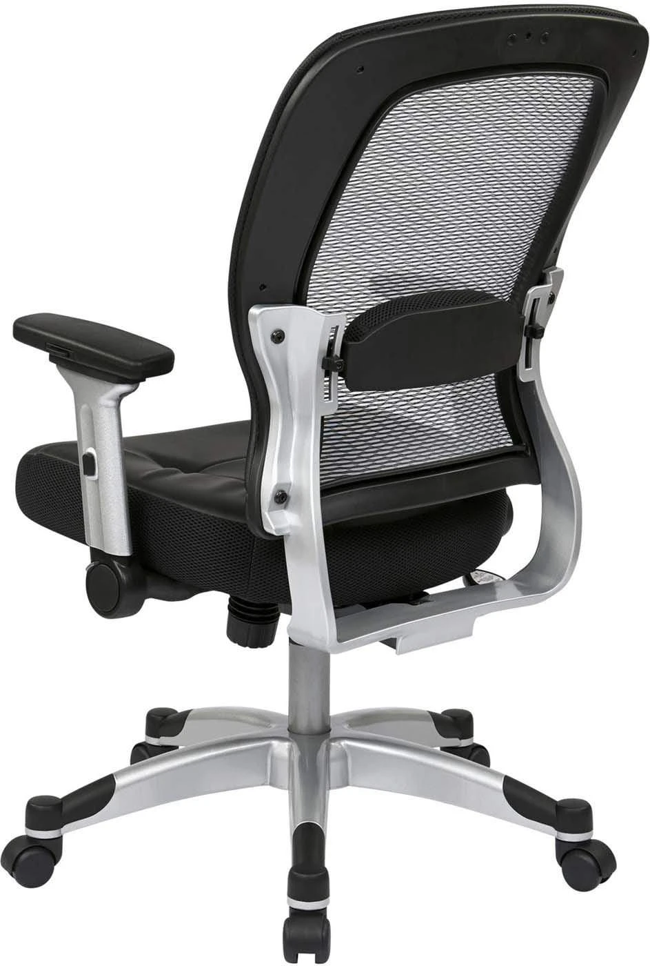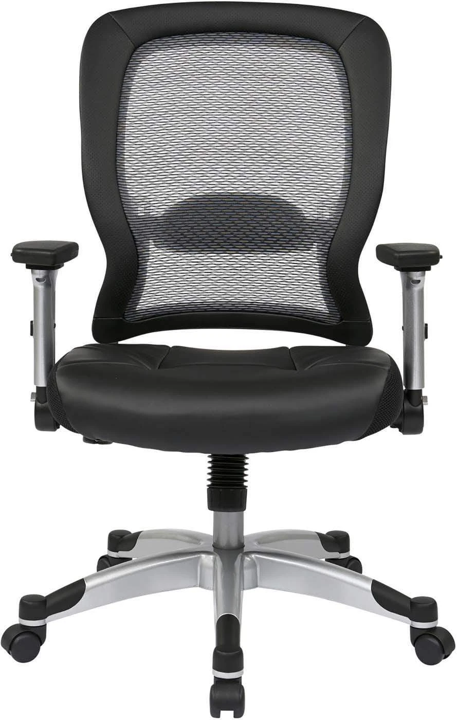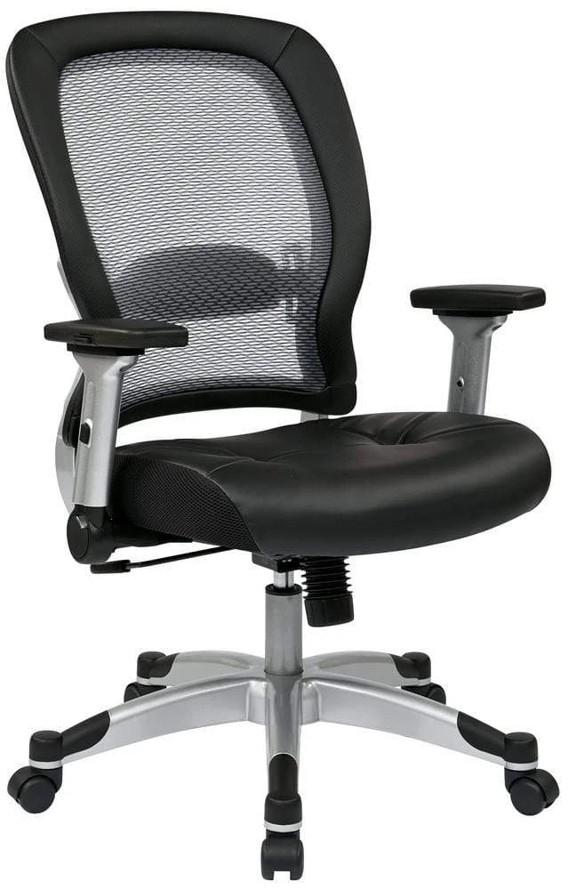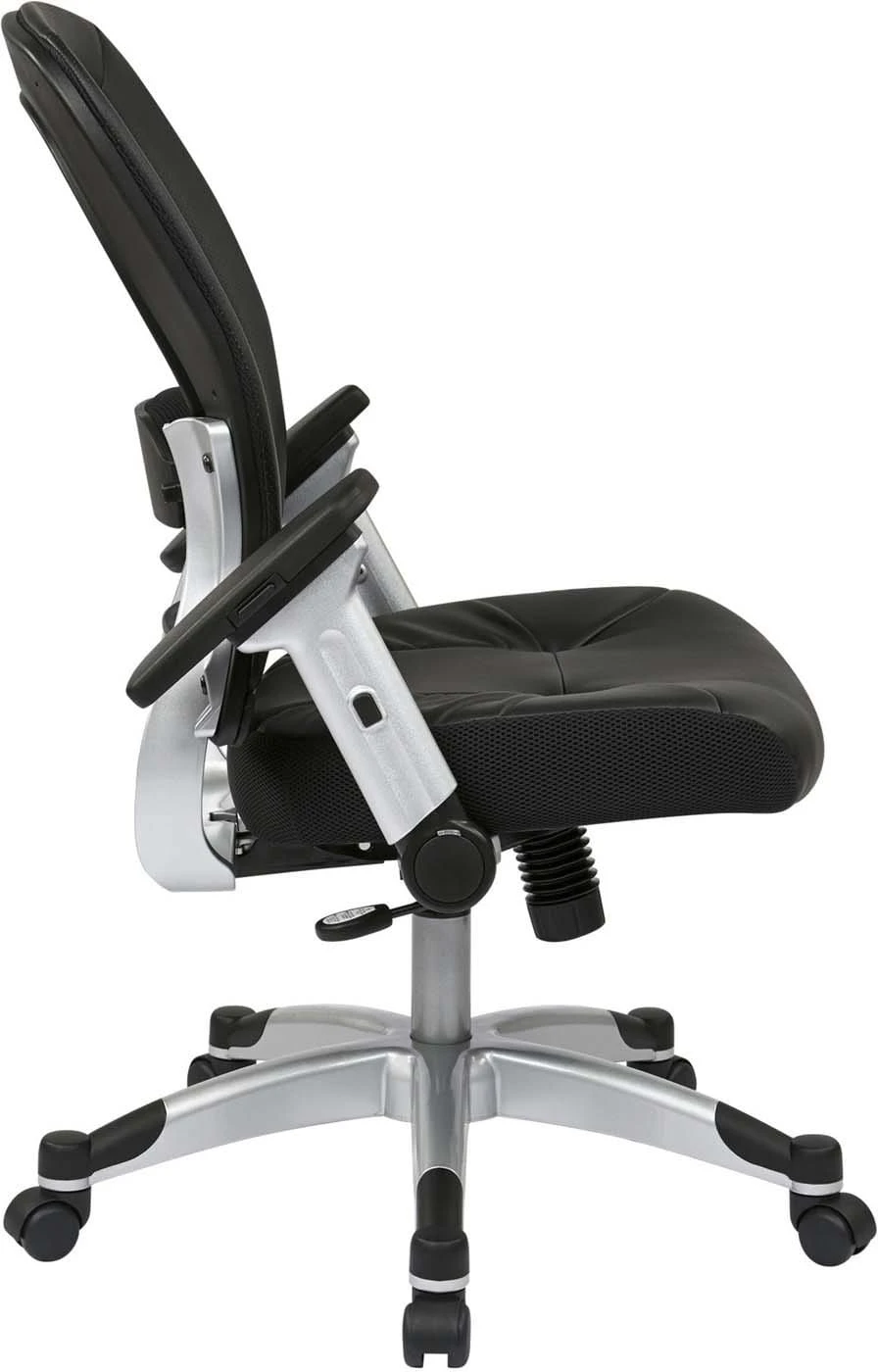 This chair conforms to your body’s unique contours with an amazingly strong yet lightweight breathable Air Grid® back. Providing both comfort and support to your body and unsurpassed in its ergonomic design, you will enjoy hours of cozy seating with the thickly padded bonded leather seat. The adjustable lumbar support minimizes fatigue and alleviates pressure on your spine. A one-touch pressurized pneumatic seating adjustment allows you to elevate to the perfect height. The 2-to-1 synchro tilt control with adjustable tilt tension helps to personalize this chair to your particular needs. The 4-way adjustable padded flip arms allow for a comfortable and cozy place to rest your hardworking hands. The heavy duty platinum finished base with end caps, and oversized dual wheel carpet casters let you glide effortlessly while protecting the base from scuffs & scratches.