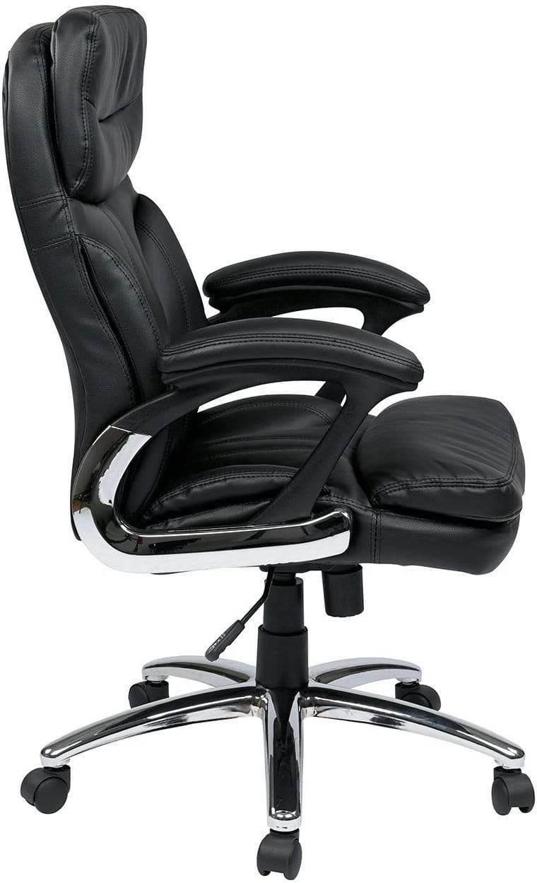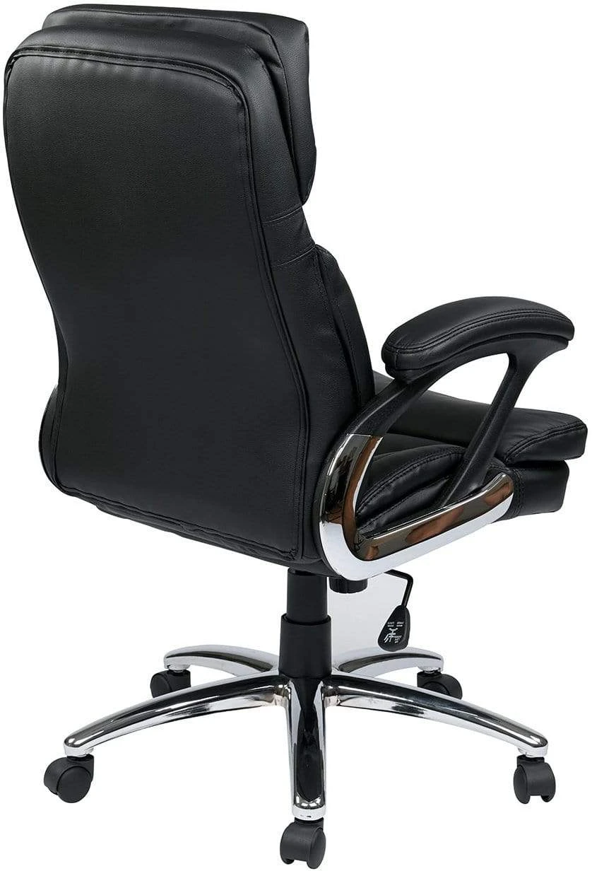 This executive high back desk chair from Office Star features soft yet durable faux leather upholstery over the thickly padded seat and backrest cushions.
