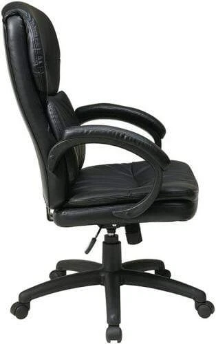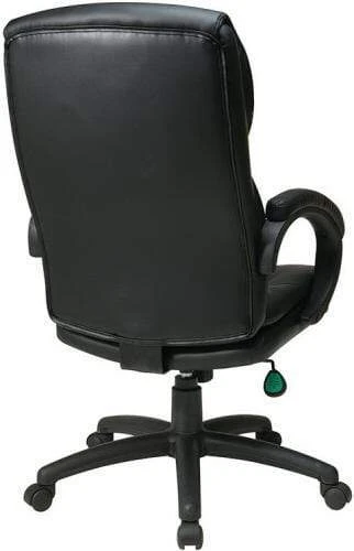 This high back executive chair from Office Star Products features black Eco Leather upholstery. Eco Leather is comprised of a faux leather finished surface area with recycled leather backing making it more durable than traditional vinyl’s backed with cotton.