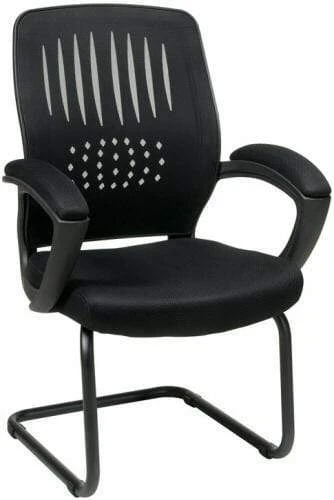 This mesh back visitors chair, from Office Star, features a contoured plastic backrest shell with ventilation holes and screen mesh upholstery for the best support and airflow available.