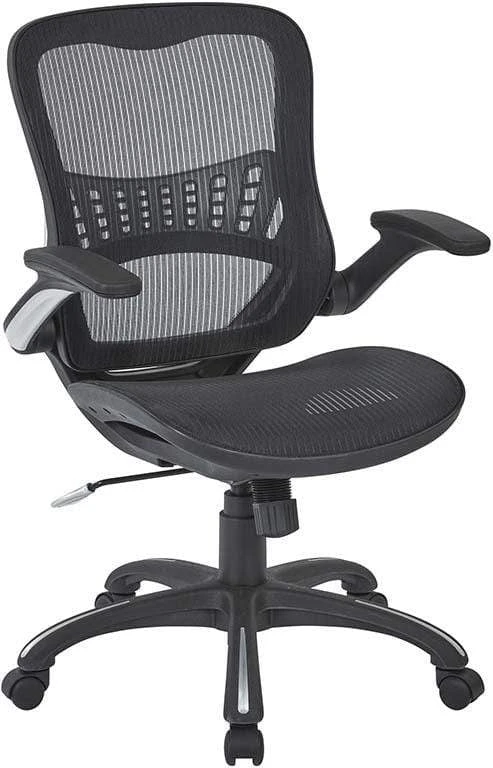 This Work Smart™ Mesh Manager’s Chair in Black combines durable, sturdy aesthetic with ultimate comfort. The framehas been sharply designed in nylon and braces a mesh screen back that delicately cradles the curves of your spine with built-in lumbar support. You’ll have full control over your chair The accommodating range of 2-1 synchro locking tilt control with adjustable tilt tension lets you have full control over your chair. Designed with up-to-the-minute technology this chair is a sleek home or office addition accomplished with style and professionalism.