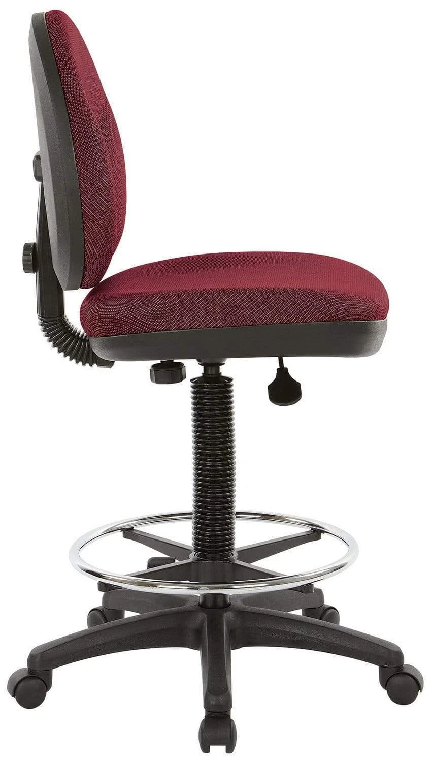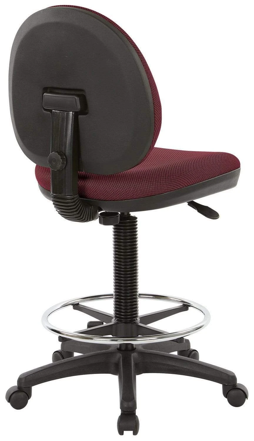 The Office Star adjustable drafting stool is designed for those that love choices and comfort all rolled into one. This chair has a sculptured backrest and seat with heavily padded cushions for superior comfort. It also features an adjustable footrest, depth and height adjustments for the seat back, and pneumatic seat adjustment that allows you to find the optimal position for your needs. You also have a caster option and 100 different color options for the fabric. The chair is also covered by a 15-year Office Star limited warranty.